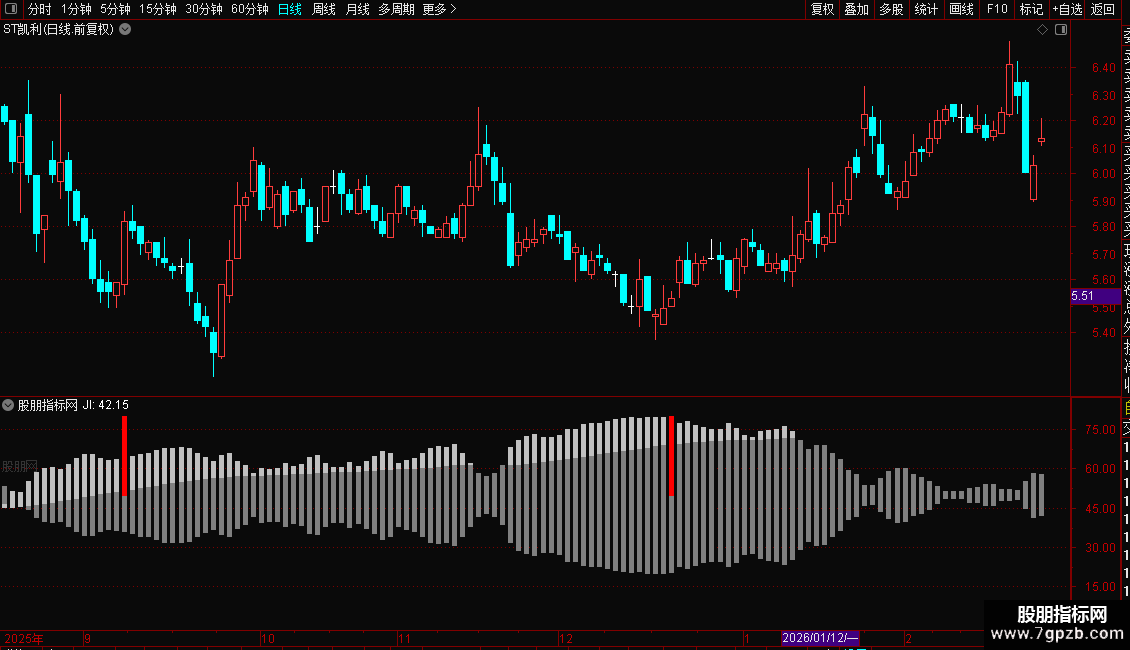 打开个股K线,调出极致爆发副图。出现以下特征即可买入持有: