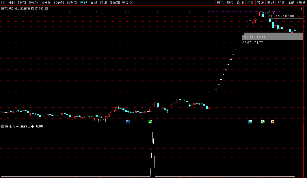 暴涨天王副图/选股助你一臂之力。本套指标经常抓到年度翻几倍的大牛股,信号稳定不漂移,采用无未来函数设计,源码全公开不加密,支持手机版和电脑版通达信软件使用,无时间限制。经常能够捕捉到涨停板启动点,助力个股一飞冲天。