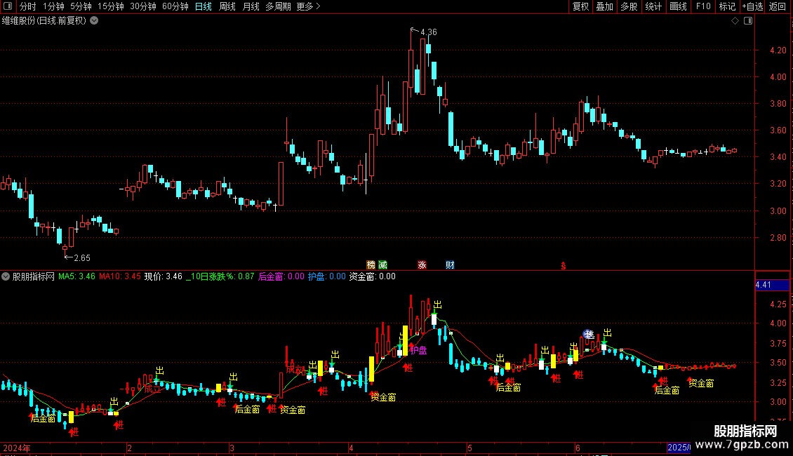 5. 多种辅助买入信号:整合了多种技术条件,在特定位置提示如“注意买入”、“成立”、“主力信号”、“后金窗”、“护盘”、“资金窗”等买入机会。