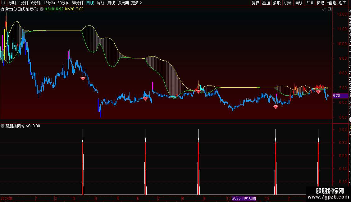 STICKLINE(A10>0 ,A10 ,绿 ,0 ,0 ),COLOR555555;{通道填充}