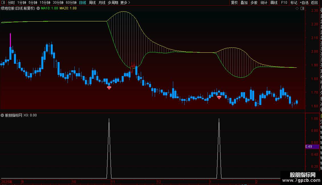 3. 信号识别:主图出现25号图标、副图出红柱,是反转启动的核心信号。