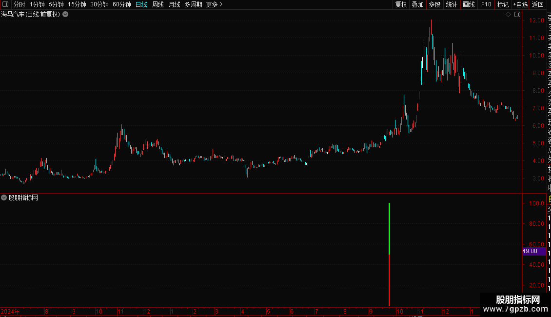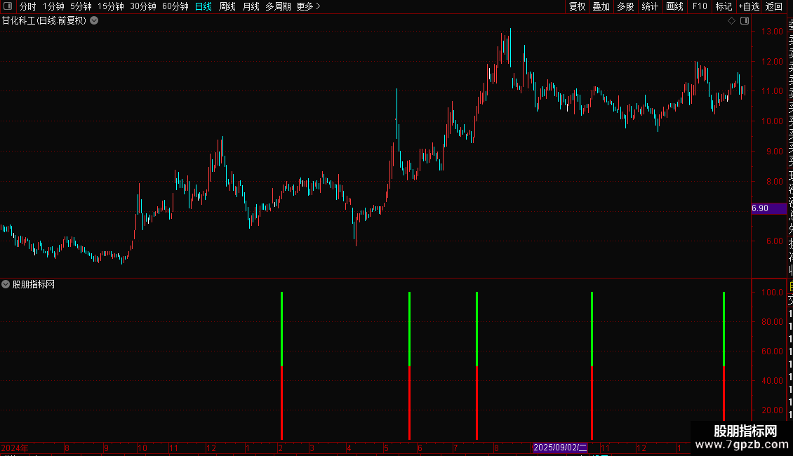 信号解读:当图表上出现红色和绿色的柱状线时,代表系统发出了一个潜在的买入信号。这表明该股在强势背景下完成了“先跌后涨”的形态转换,可能即将开启新一轮上涨。