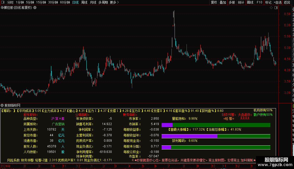 指标源码的主要功能是在K线图上集中展示股票的关键基本面(F10)数据和财务风险预警,省去手动翻看资料的麻烦。它把公司的核心“体检报告”直接叠加在交易界面上,方便投资者快速判断公司质地。