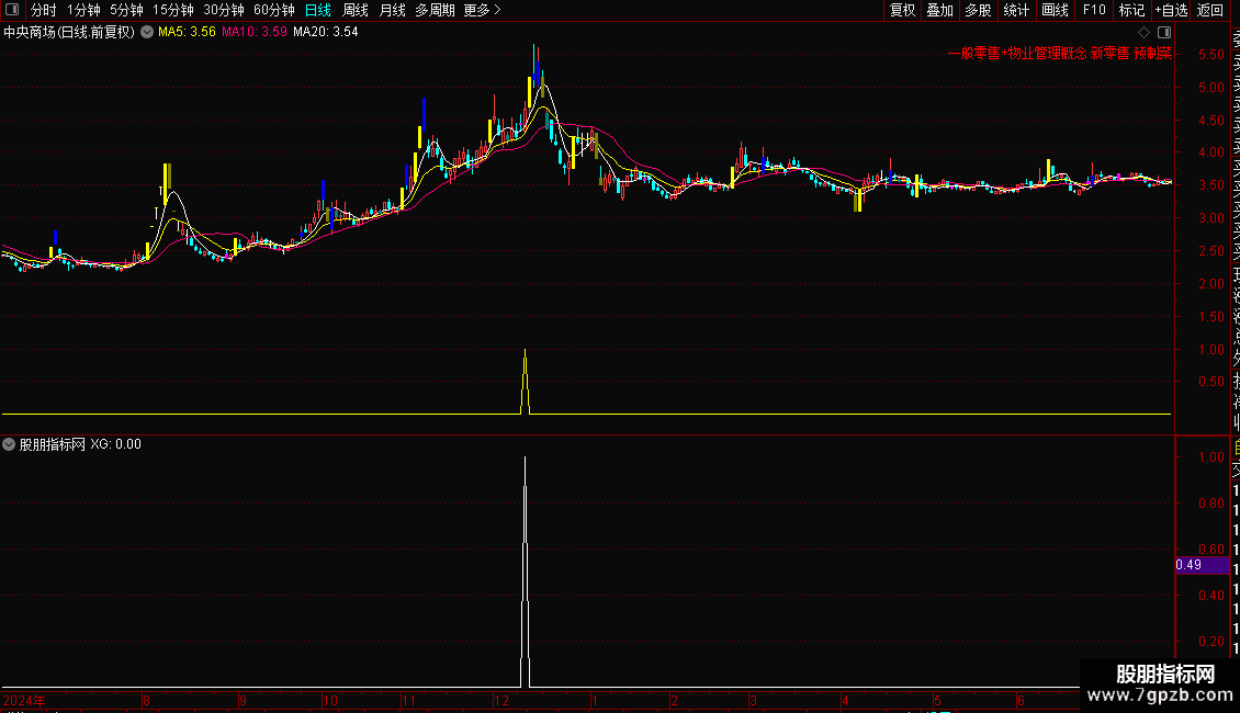 所属行业和概念:DRAWTEXT_FIX(C>0,1,0,1,STRCAT(STRCAT(HYBLOCK,'+'),GNBLOCK)),COLORRED;