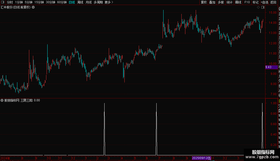 基础信号:=三连阳 AND EXIST(三连阴,10);