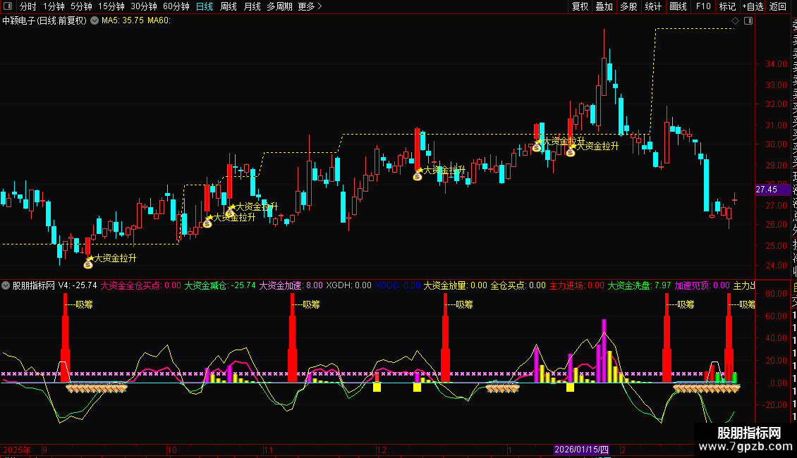 大资金吸筹副图指标源码如下