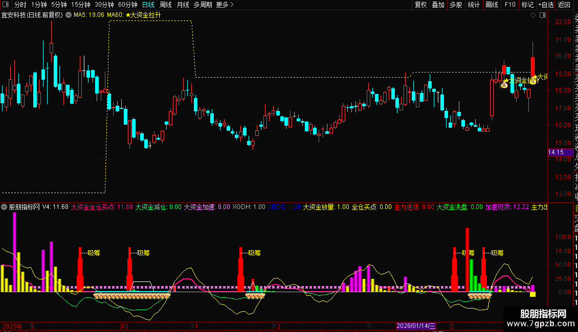 NOTEXT:大资金拉升 DOTLINE COLORYELLOW;