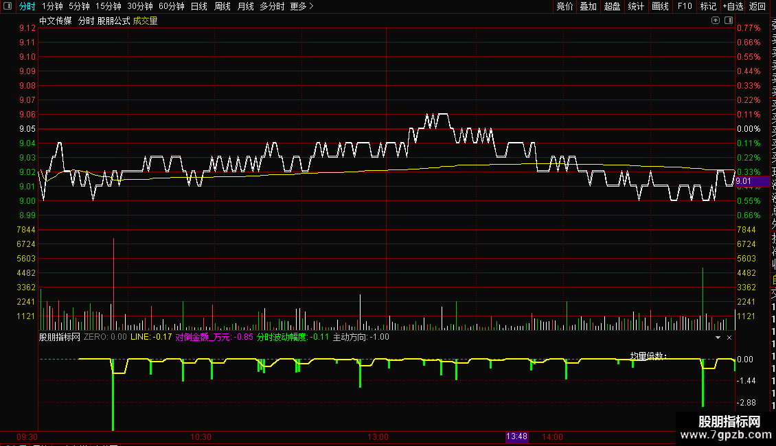 需在 “分时图” 或 “分钟 K 线” 周期下使用(如 5 分钟 K 线),日线周期下参考意义低。