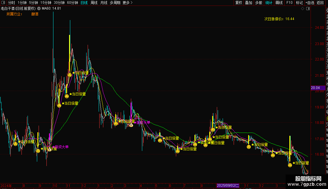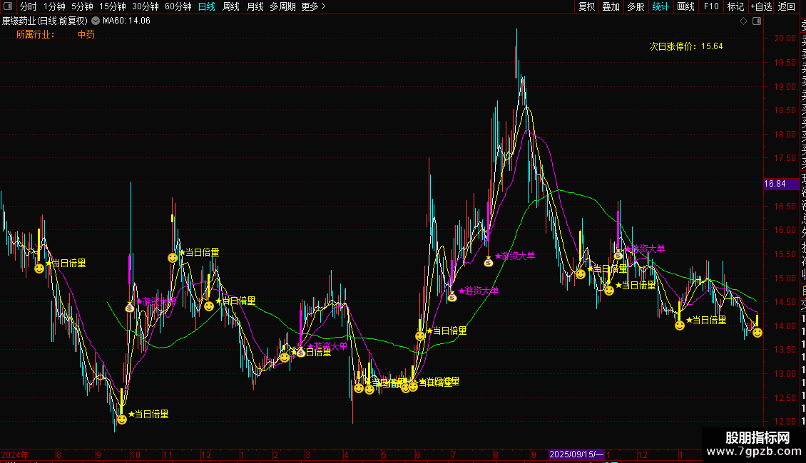 指标主要功能是辅助短线交易,实时显示个股所属板块及次日理论涨停价,帮助投资者预判空间。核心策略是通过均线系统和特殊算法,识别“倍量阳线”与“游资大单”进场信号:当出现黄色柱体提示当日倍量时,关注主力建仓迹象;若出现紫色柱体并标注“游资大单”,则意味着资金强势介入且形态突破,是更明确的短线追涨买点。