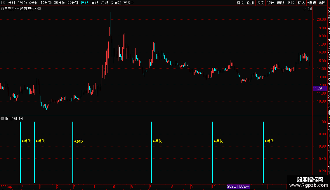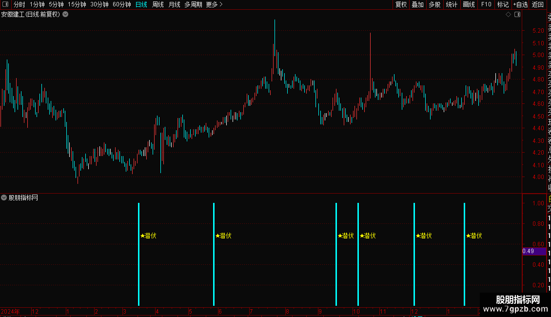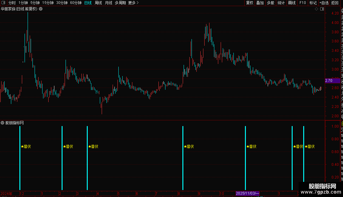 1. 副图指标:在通达信K线副图加载公式,出现“★潜伏”信号时,结合量能判断波段介入点;