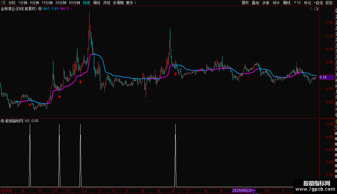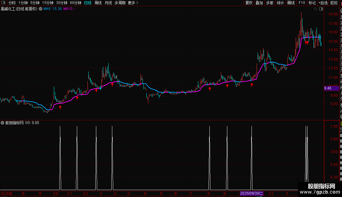 操作策略:只有当股价站稳趋势线之上,且短线指标在低位形成黄金交叉时,才发出买入信号。这旨在确保只在上升趋势的回调低点介入,避免在下跌趋势中盲目抄底,追求高胜率的反弹行情。