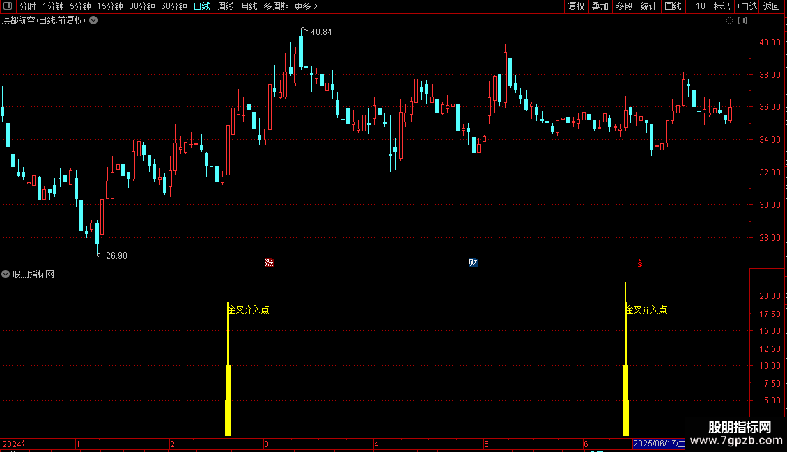 DRAWTEXT(金叉,18,'金叉介入点'),COLOR00FFFF;