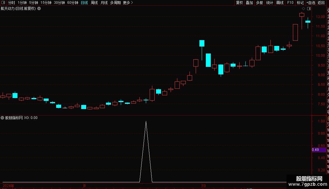 准备买入:=STICKLINE(趋势线< 11,趋势线,11,5,0),COLORYELLOW;