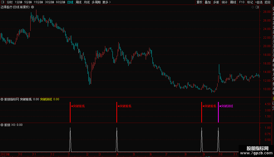 DRAWTEXT(突破前低,4,' ★突破前低'),COLORRED;