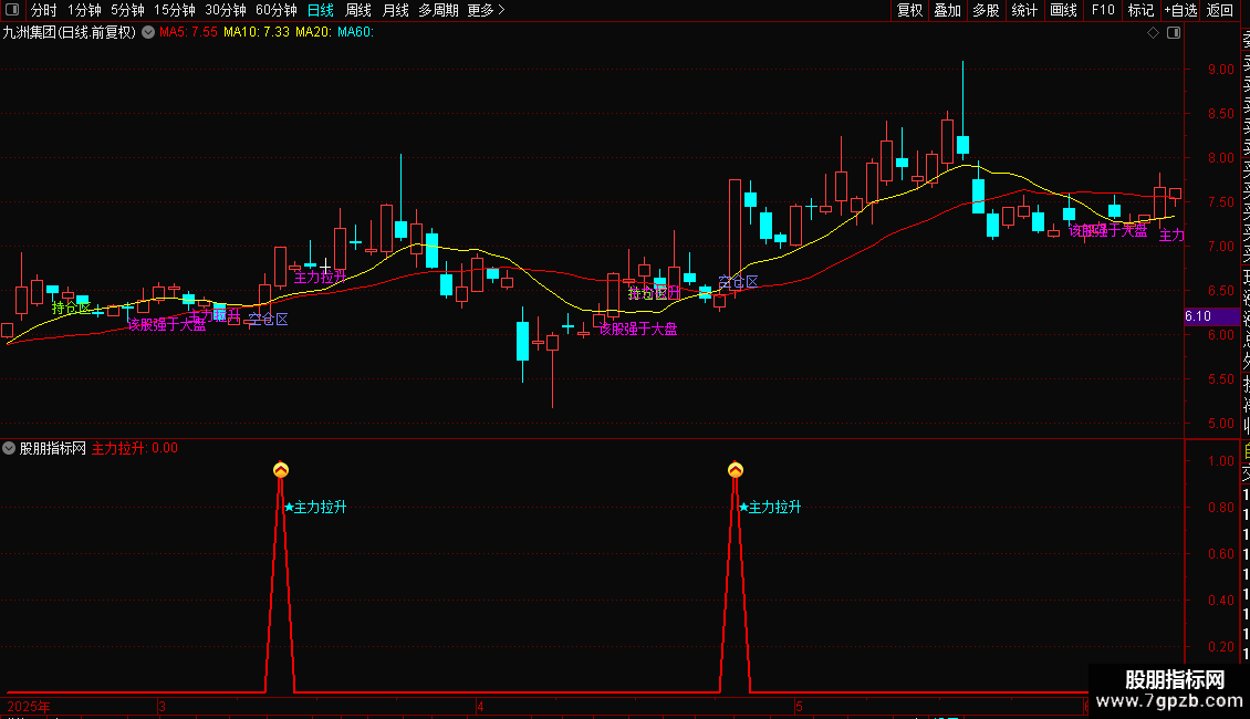 DRAWTEXT(主力拉升,0.8,' ★主力拉升'),COLORFFFF00;