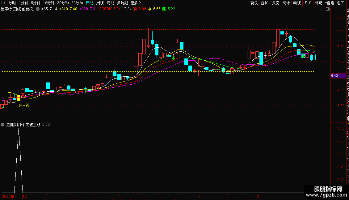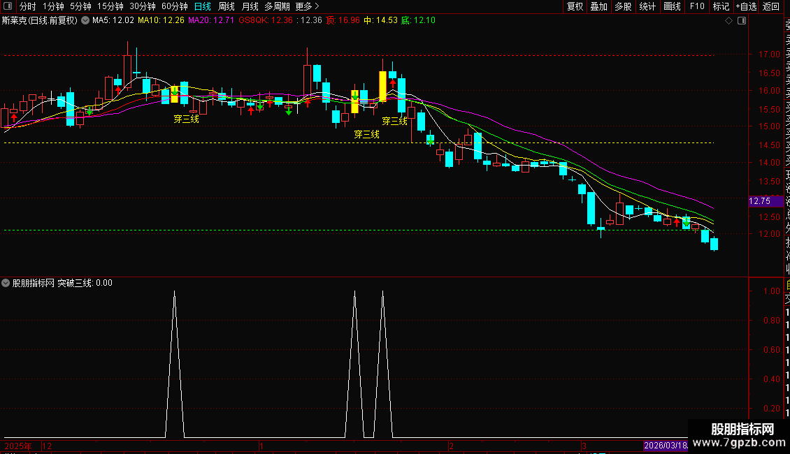 DRAWTEXT(突破三线, L*0.97, '穿三线'),COLORYELLOW;