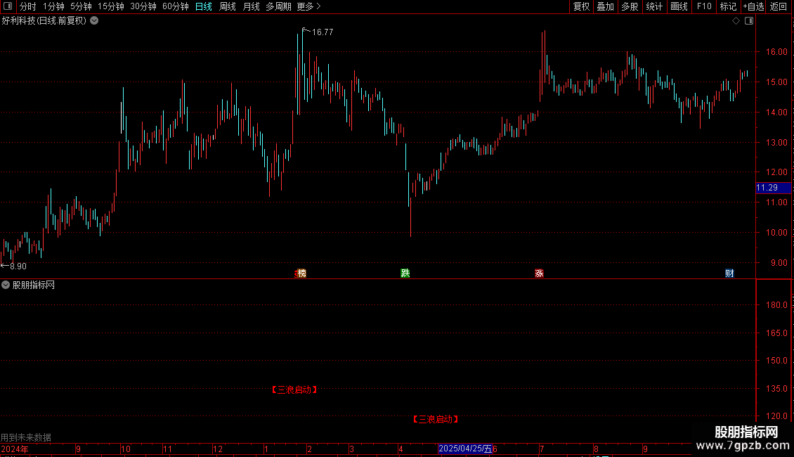 指标用于识别“三浪启动”形态。