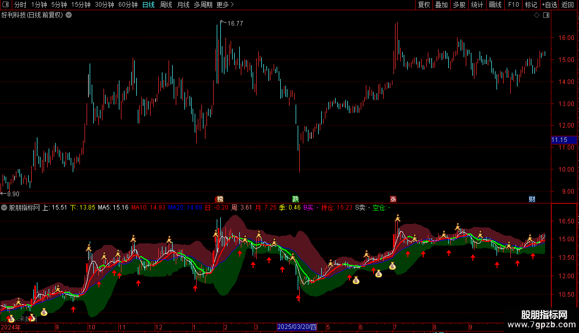 7. 价格支撑压力:通过近期与长期的高低点,标识关键的支撑与压力位。
