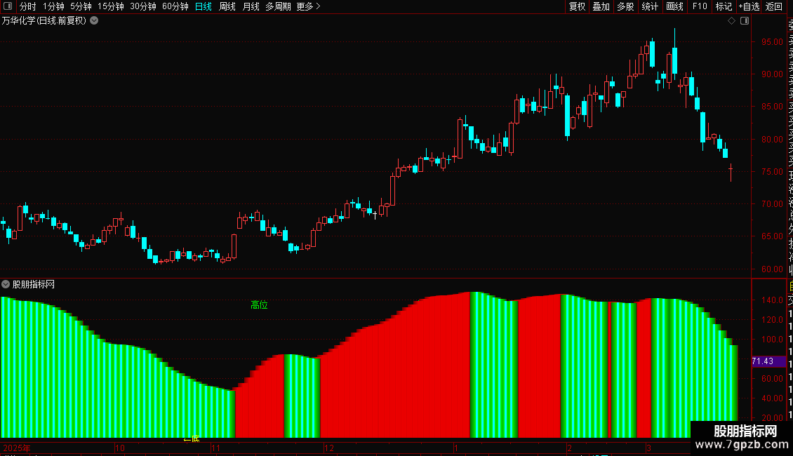 DRAWTEXT((VAR4< REF(VAR4,1)) AND (VAR4>79),135,'高位'),COLOR00F200;