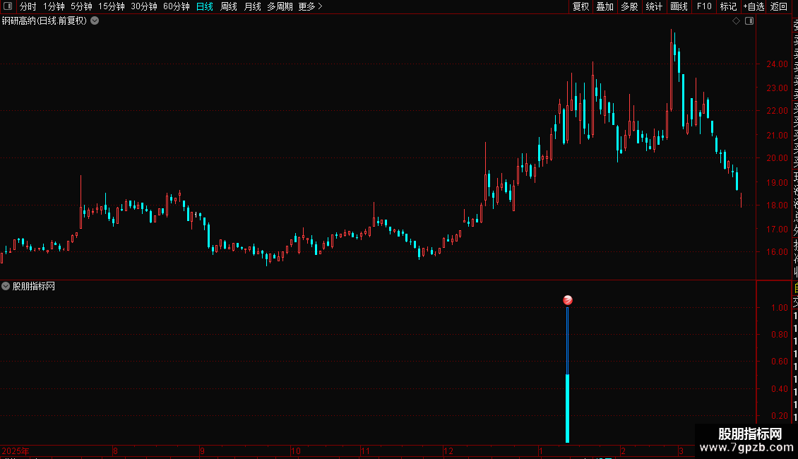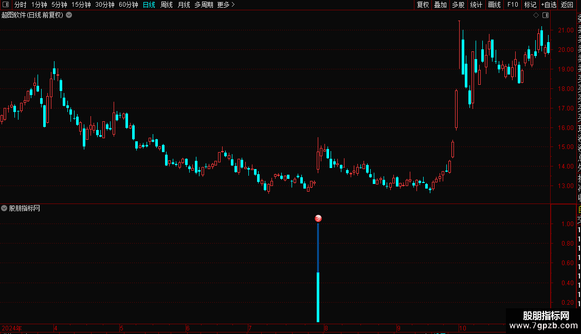 指标旨在捕捉短期超跌后的强势反弹机会。主要功能是通过监测股价与均线的偏离度及动量变化,识别主力洗盘结束的瞬间。操作策略上,当股价经历连续小幅回调或快速杀跌后,一旦突然出现大幅上涨并伴随指标发出彩色柱状及图标信号,即为最佳买入点。这通常意味着空头力量耗尽,多头开始强力反攻,适合激进型投资者进行短线狙击,博弈快速拉升行情。