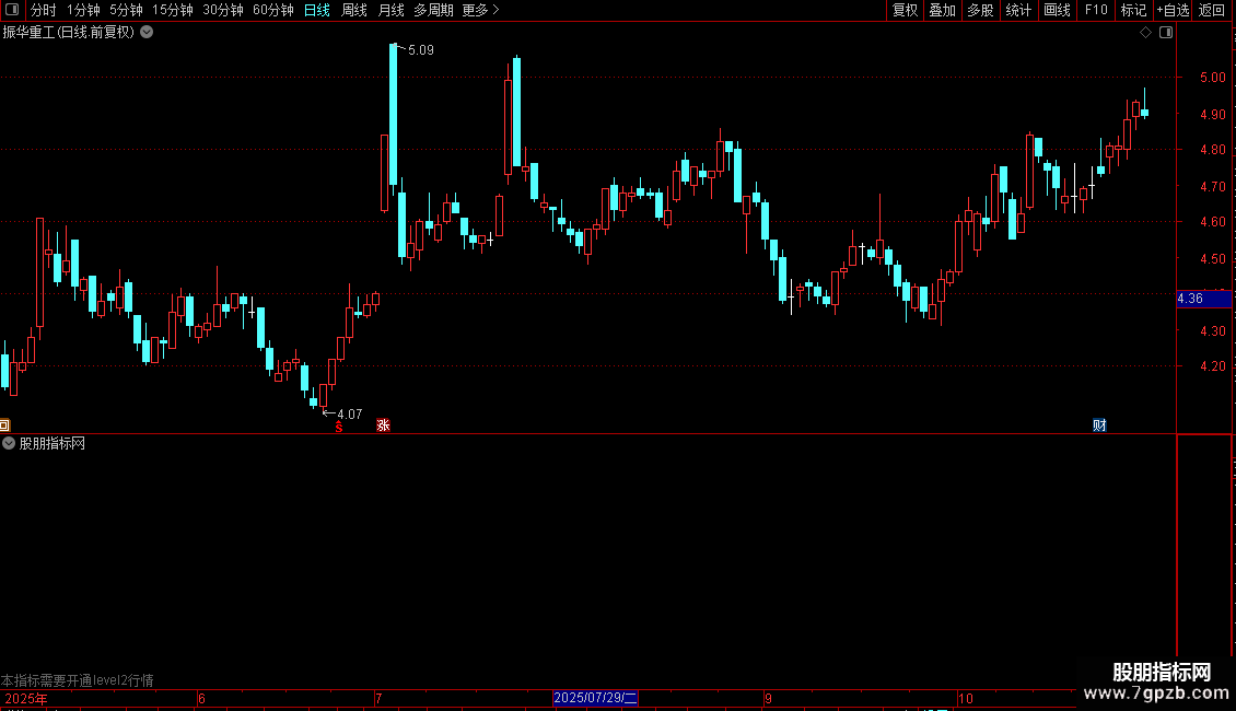 1. 加载到主图后,会在K线图下方固定显示资金面板。