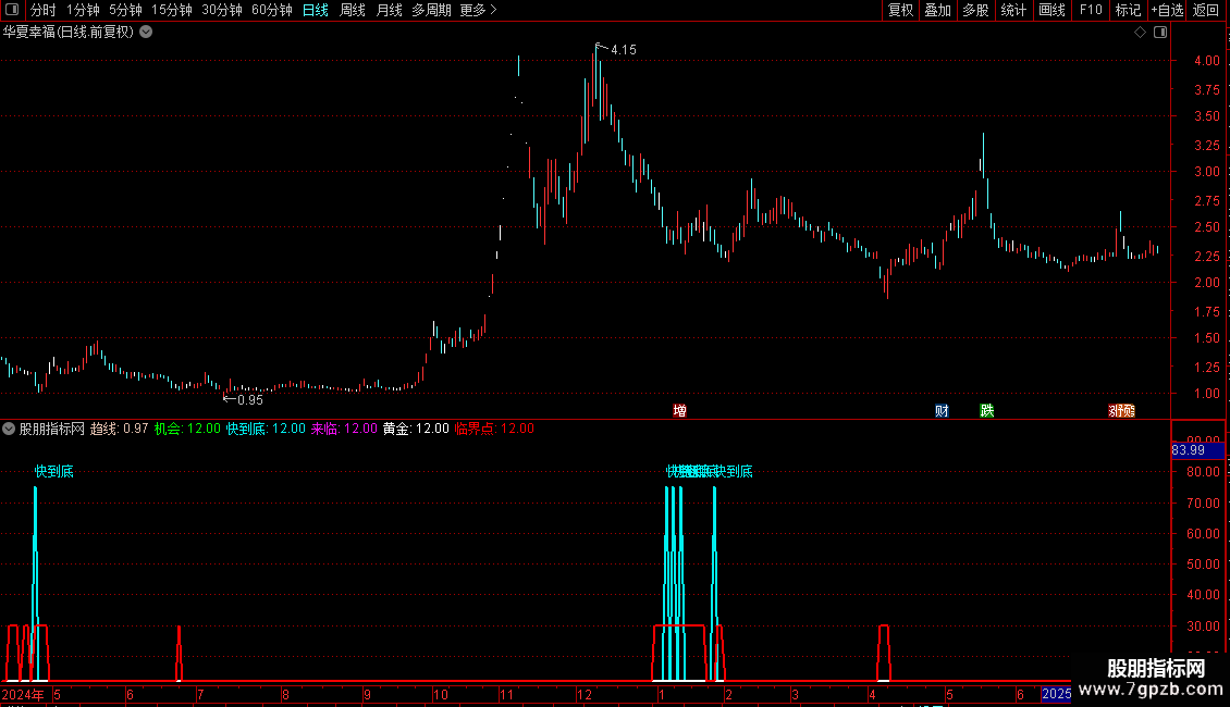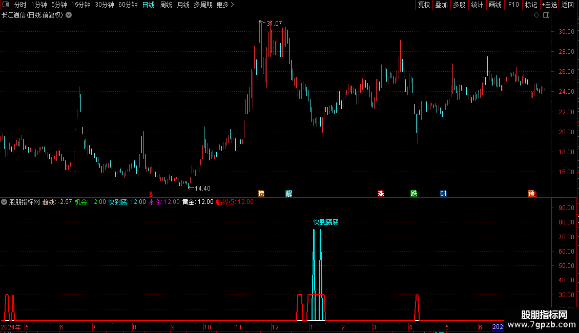 快到底:IF(CROSS(-20,趋线),75,12),LINETHICK2,COLORF0F000;