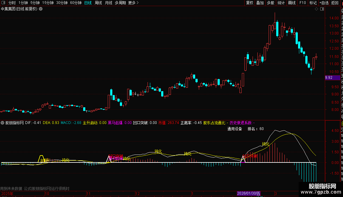指标旨在捕捉股票主升浪的启动时机,综合了趋势、量价关系和市场情绪等多个维度。其核心策略是:首先判断股价是否有效站上长期均线(如60日线),并且短期均线呈多头排列,形成“主升启动”的基础;其次,通过计算一段时间内股价的波动幅度,寻找价格稳定、波动较小但突然放量突破的“黑马起爆”机会;最后,利用趋势指标ZIG和画线工具,识别出股价在阶段性高点后的回落低点连线(即“凹口”),当股价再次放量突破此连线时,确认为强劲的买入信号。整个系统是一个多层次的筛选器,旨在从不同角度验证庄家控盘和拉升的有效性。