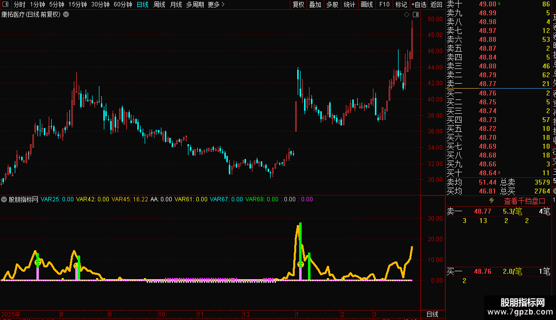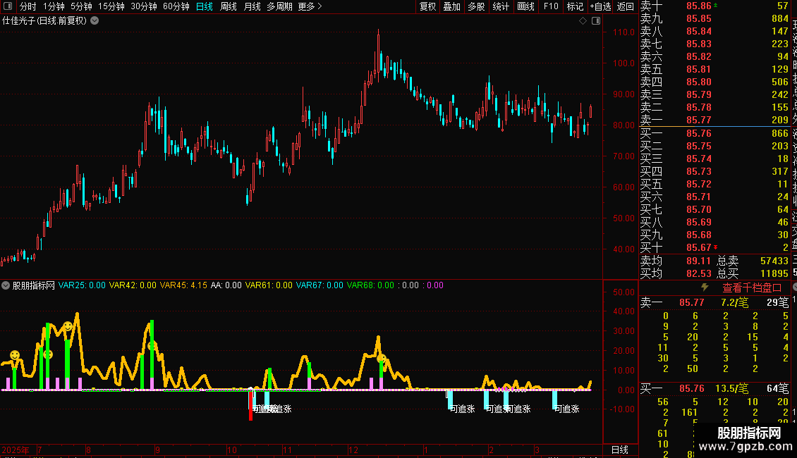 DRAWTEXT(((VARG26 < (0 - 50)) AND (VARG25 > 7)),(0 - 10),'可追涨');