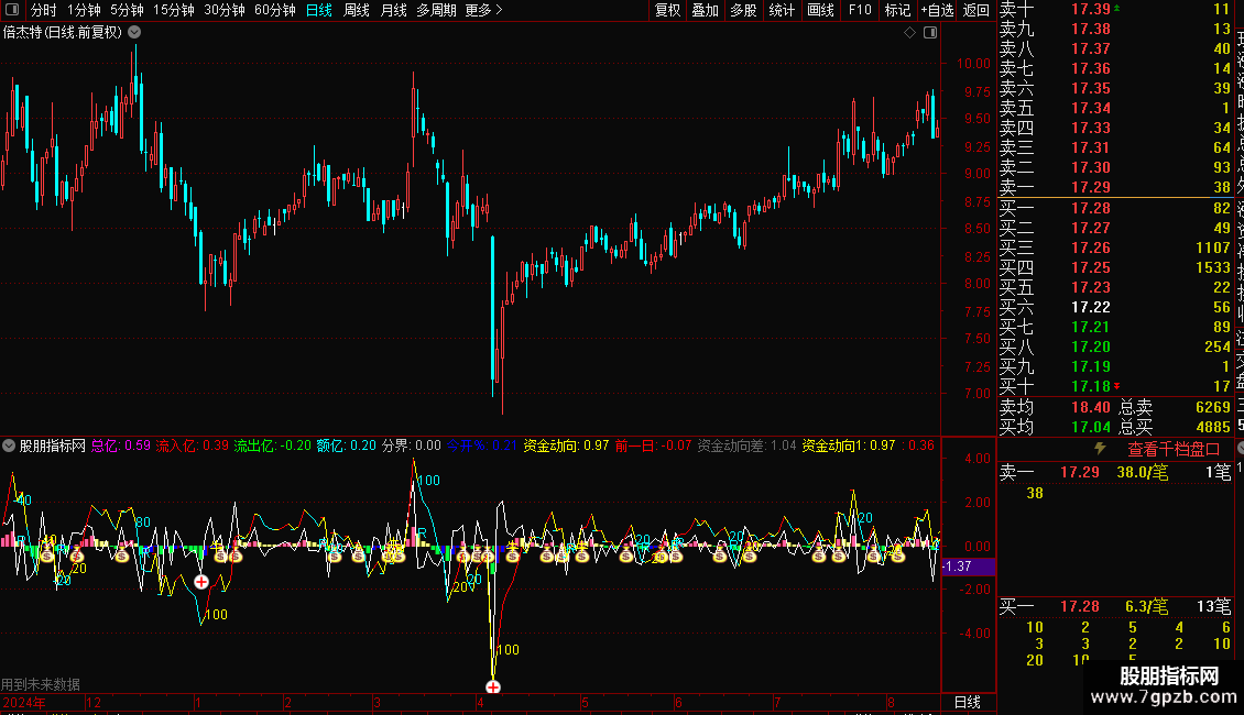 3. 实战应用:结合股价位置,当资金净流入柱体持续放大且伴随“牛”字信号,可择机入场;资金净流出柱体扩大且出现青色转向数值,需及时止盈止损。