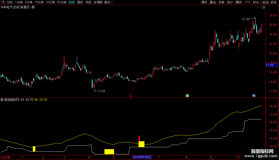 基础条件预警:当仅满足MACD“基础”条件时,用黄色柱状线进行标注,提示潜在关注位置。