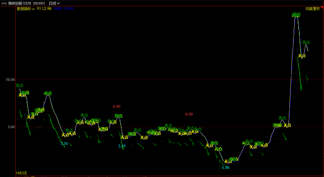 卖点:=CROSS(VAR1,PJ) AND VAR1>PJ;