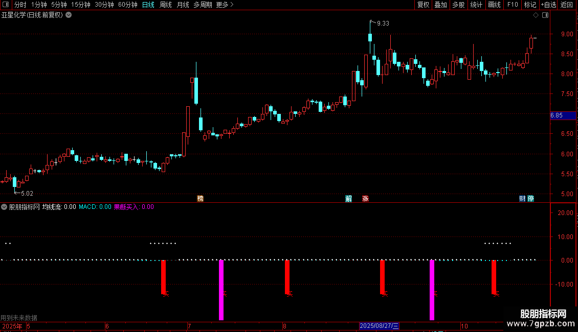 “买”、“卖”箭头及“果断买入”等文字提示基于ZIG函数等算法,使用时需注意其特性。