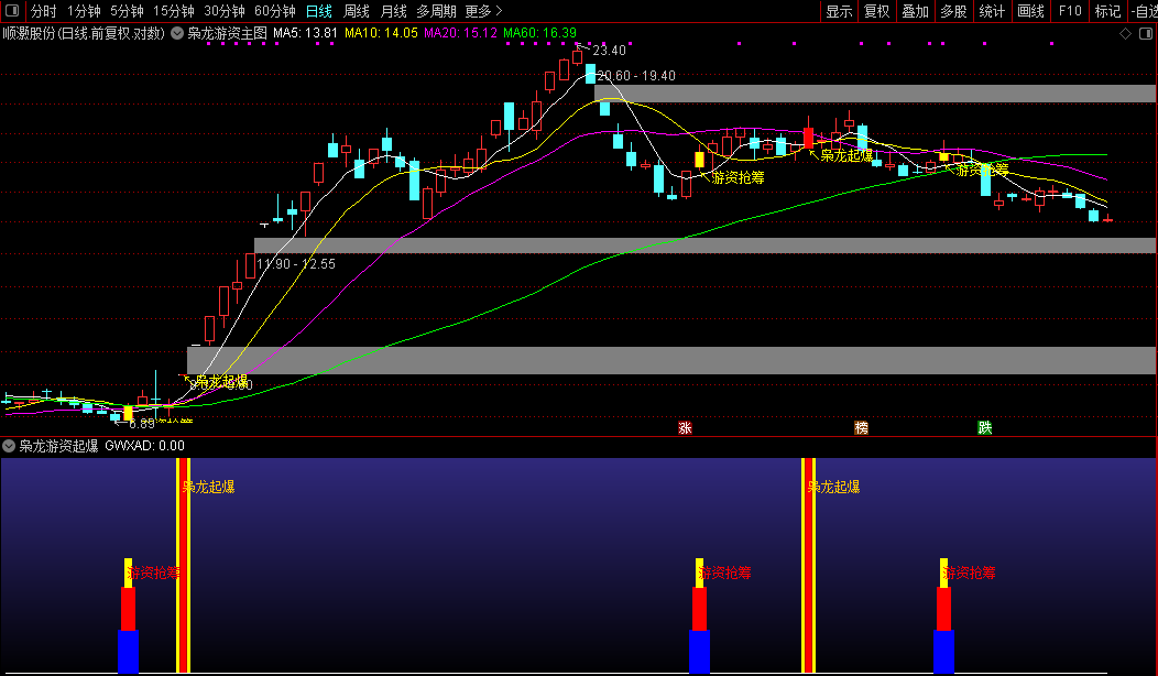 3、当公式出现“游资抢筹”信号,则是游资准备介入的信号,可予以关注。