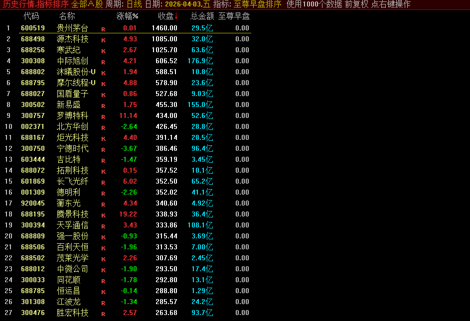 1. 早盘9:25-9:30集合竞价结束后,键盘输入.401后,选择“选择排序指标”,找到并选中你刚刚导入的“至尊早盘排序”。