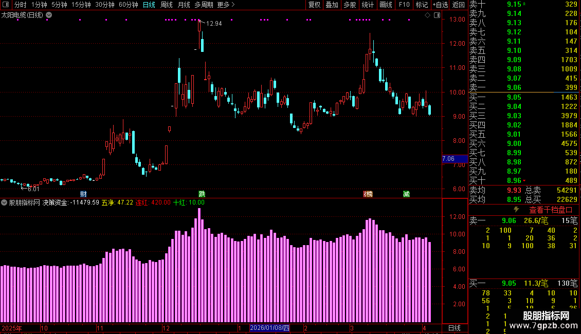 指标通常作为副图指标使用。通过观察彩色柱状图的变化、决策资金线的方向以及连红天数等,辅助判断资金流入流出的趋势和强度。