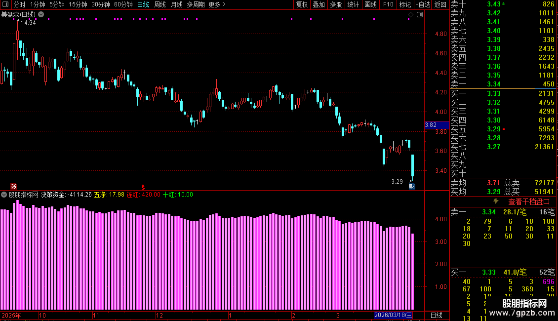 2. 计算“决策资金”,即所有分类的买卖净额总和,反映主力与散户的综合资金流向。