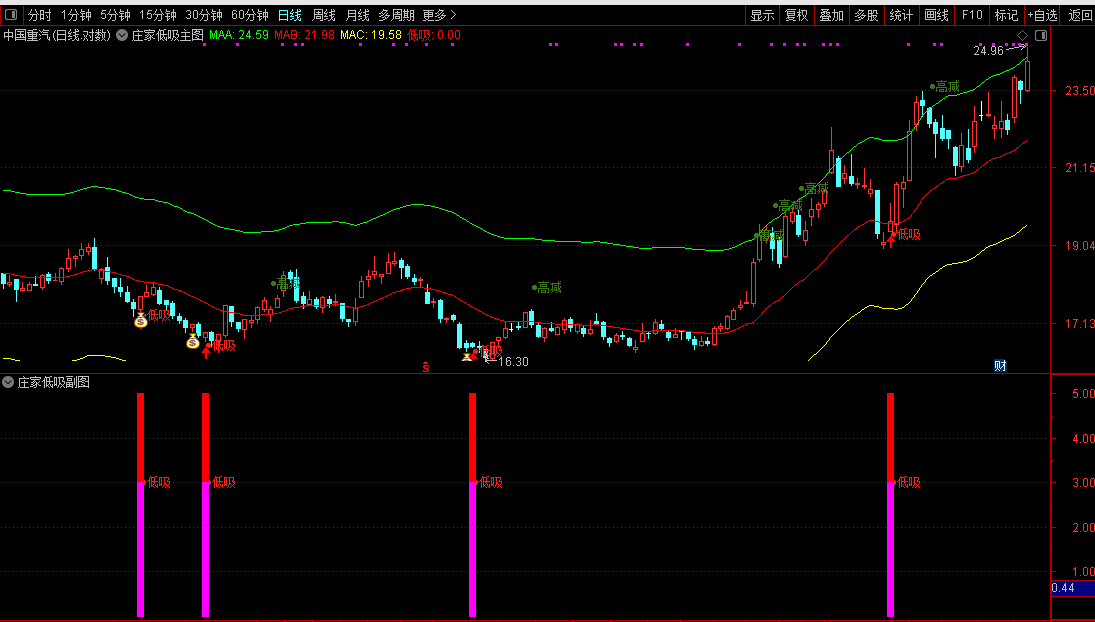 当图表上出现“●低吸”或“大底”图标时,可视为潜在的买入机会,投资者可结合其他因素择机介入。当出现“●高减”信号时,则提示短期可能面临回调,可考虑减仓。折磨人的行情,低吸是一种很好的方式,仅供参考!