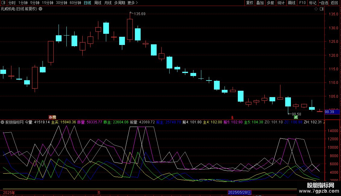 该公式用于计算盘中及历史的主买、主卖成交量,并显示多日量价数据。