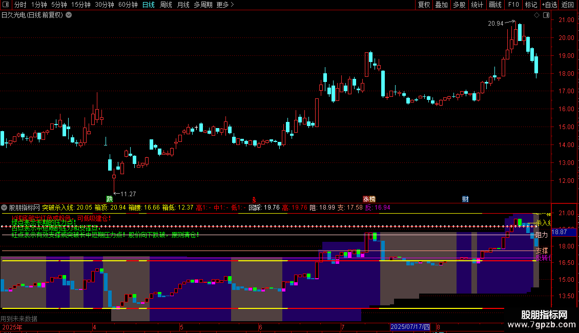STICKLINE(CURRBARSCOUNT=1,支撑618%,支撑618%,300,-1),COLORRED;