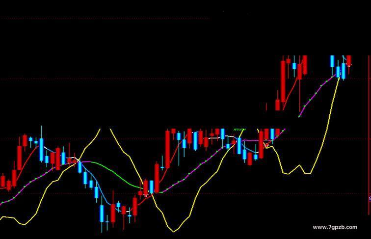 指标分为三条线,其中,黄线为操作线,主要用于辨识当前价格走势的整体运行方向;带点的粉线(可以变为绿线)是分水岭线,主要反映当前价格走势的阶段性方向;红线(可以变为蓝线)为输出线,主要反映当前价格的波动状况。