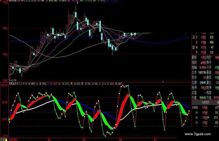 最近在网上浏览看到一款大智慧的“黄金KD”副图指标,试着改编成通达信的源码指标,并在通达信上编译通过。为让喜欢自己动手的股友们参考,今特在理想论坛上与股友们分享,包括通达信和大智慧的两个指标。通达信的指标上增加“▲ ▼”图标,以示“进 出”,因为“KDJ”是一款经典指标,所以其图示应该明了,不多说,上图上指标。