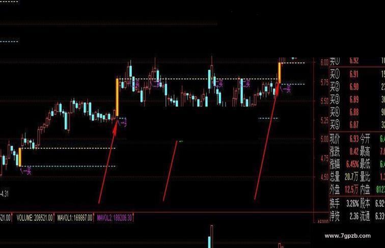 当满足条件BL时,在开盘价和收盘价位置之间画柱状线,宽度为1.3,0不为0则画空心柱.COLOR0093FF