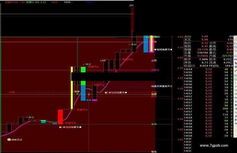 STICKLINE(买线>=卖线,HHV(H,60),LLV(L,60),5,0),COLOR000045;