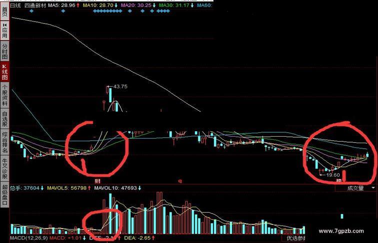 切记:有一线金叉,肯定也有一线死叉,一旦是一线死叉则可能引起暴跌。所以在使用该法时一定要记住是,30均线一定是在朝上走时,一旦30线拐头向下则要抛出。