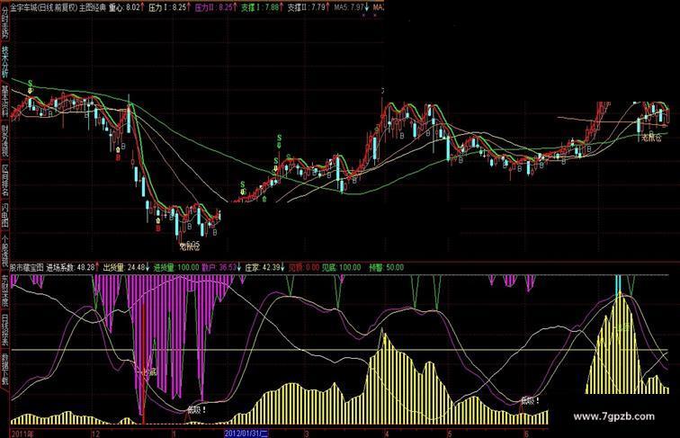 参照指标中的黄柱与红柱,并结合macd 及进场系数,可判断股性的强弱,对股票的持有,还是出货及买入,卖出点,均有较好的参考。其它的自已悟吧。