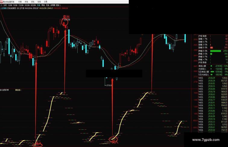 用法:黄金线出现可以买入,消失卖出。看大盘指数帮你逃顶,抄底。