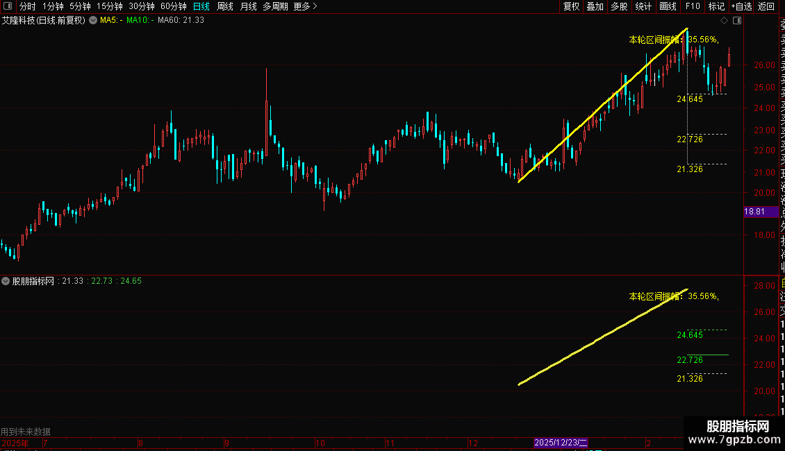 区间振幅表示上升(下降)趋势的振幅,方便您在所处趋势中观察手中个股上升 下降参考前面趋势。知道目前股价处于趋势的什么位置。