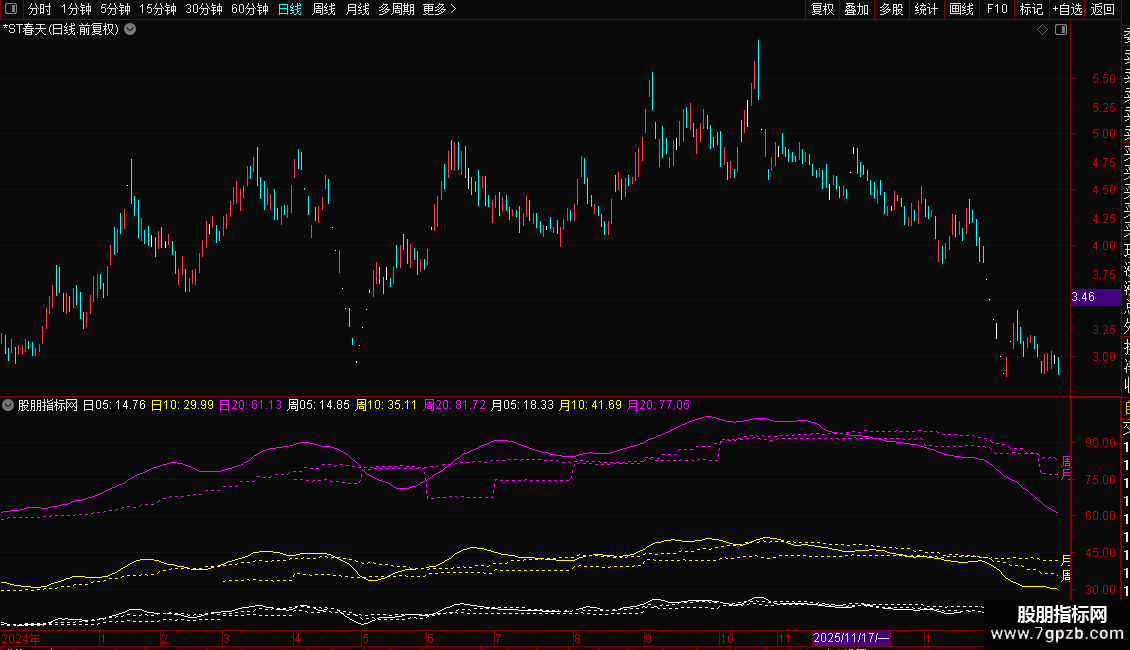 日线上实现跨周期显示“周均线”和“月均线”,不是市面上引用week和month函数的写法,手机通达信也可以使用。