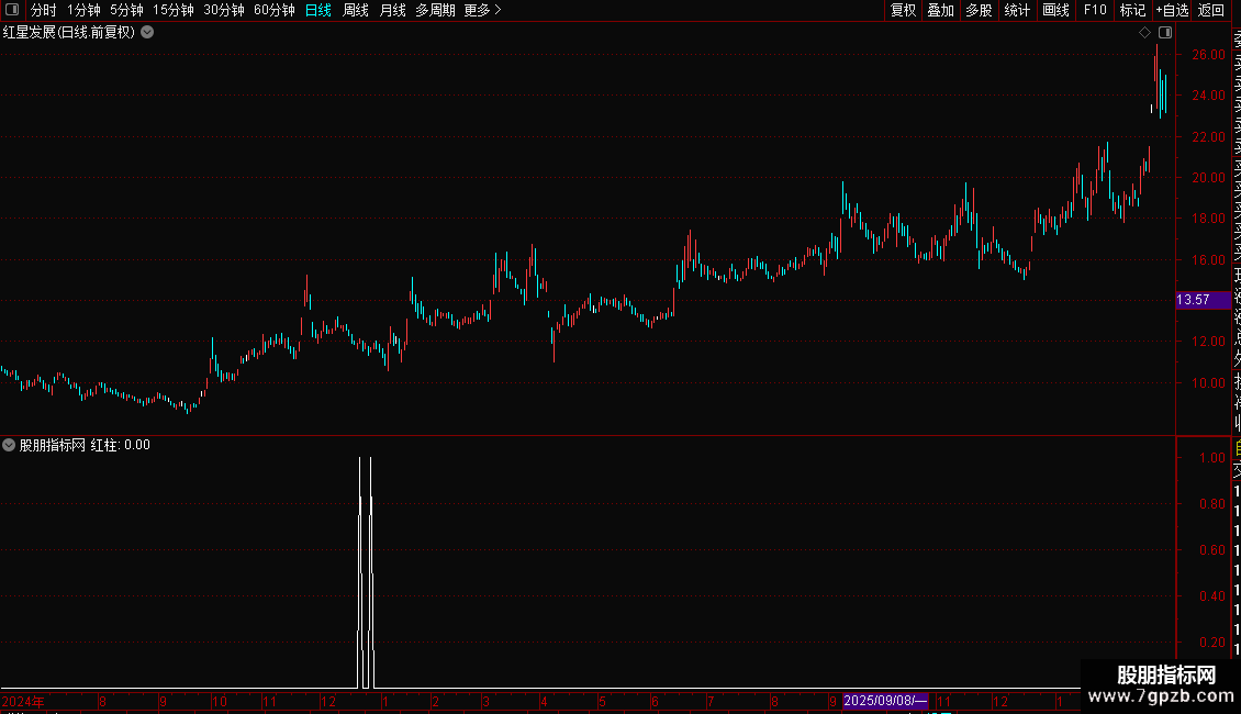 红柱:连续缩量 AND 涨幅要求;