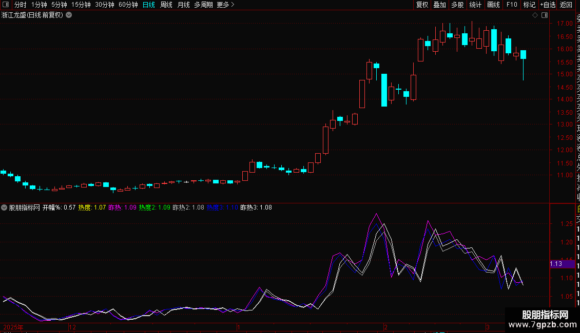 热度3:1/((MA5+MA10+MA20+MA30+MA60+MA120)/6/O);